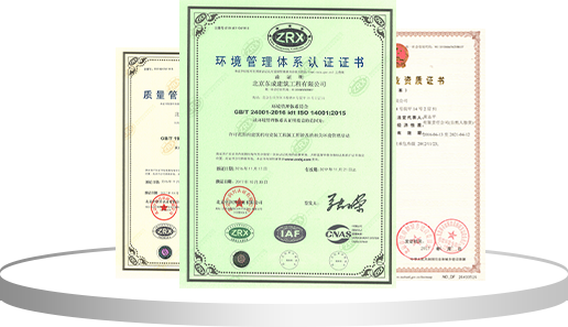 先后取得北京市建設(shè)委員會核發(fā)的機(jī)電工程專業(yè)承包、裝飾裝修專業(yè)承包、建筑智能化專業(yè)承包等多項專業(yè)承包施工資質(zhì);并順利通過ISO9001、T50430質(zhì)量管理體系認(rèn)證,ISO14001環(huán)境管理體系認(rèn)證和OHSAS18001職業(yè)健康安全管理體系認(rèn)證,完成三個體系的整合認(rèn)證工作。